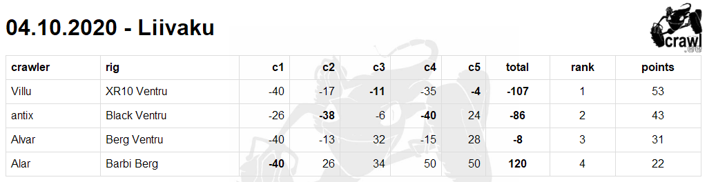 Hei hei, põhapäeval 04.10 peaks plaanipäraselt viimane võistlus olema.