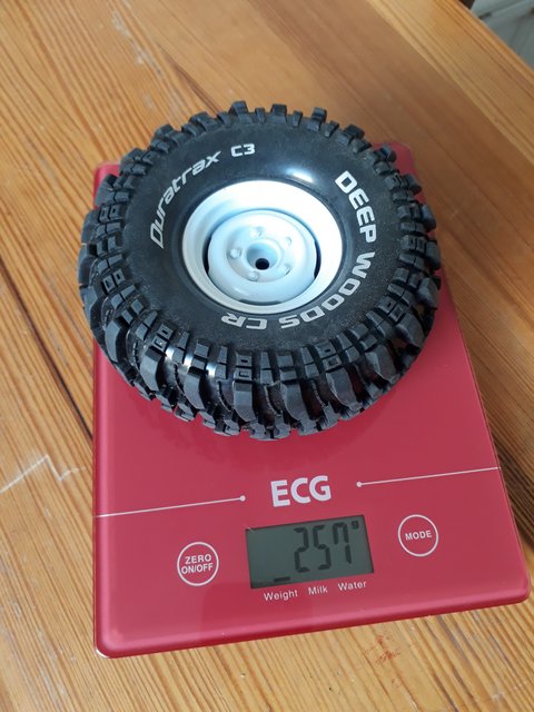 Uus velje ja rehvi kombo annab kaalu juurde 600g, ehk auto hakkaks olema 3,3 kg. Rooli servo peaks hakkama saama.